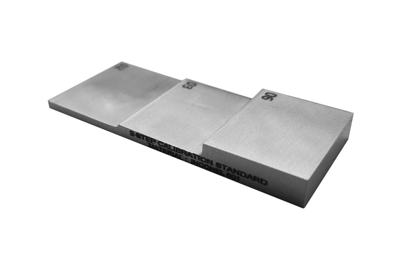 Step calibration wedges come in a large variety of sizes and configurations. Step wedges are typically manufactured with four or five or steps but custom wedge can be obtained with any number of steps. 3 Step Calibration Block for thickness and linearity calibration 3 Step Calibration Block 0.4mm – 2.0mm with two EDM flaws. Includes Test Report Traceable to NIST and Certificate of Conformance.